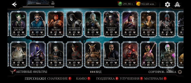 14 серебряных персонажа на 10 слиянии, 60 уровня, открыты все, все 3 спецприема на максимум, поддержка на максимум.