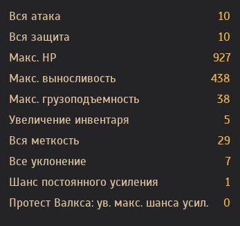 ➤ 282 энергии 336 влияния; 124 инвентаря 1020 лт веса;
