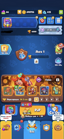 🔴Rush Royal 4200% Крит | 15лвл леги пешки | Лег сет лес | 64 Гайка + ключ + утка