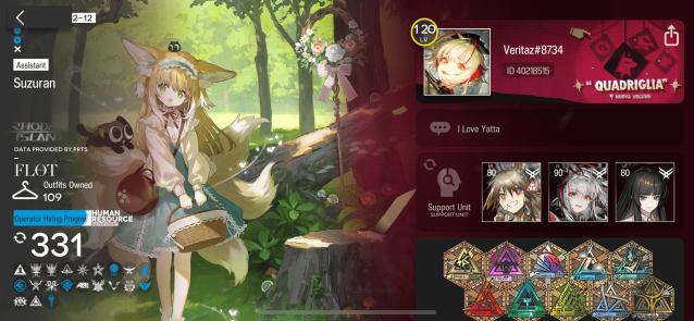 Global Lv 120 90⭐6 | 19 limited and 109 Outfit | 331 OP | Full Collab Operator | Wis'adel Full Poten