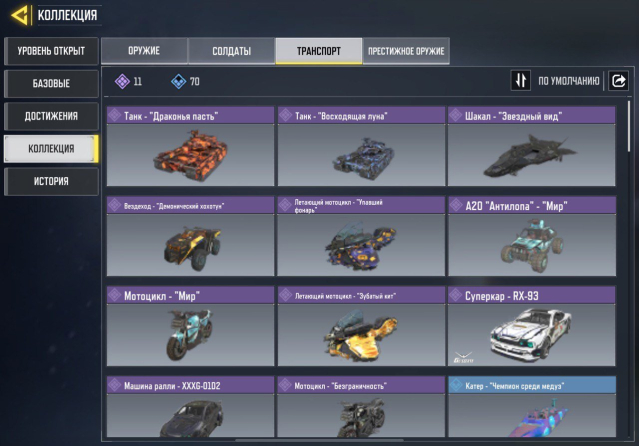 💥 — ТРАНСПОРТ: 11 ЭПИК, 70 РЕДКИЙ 🚗