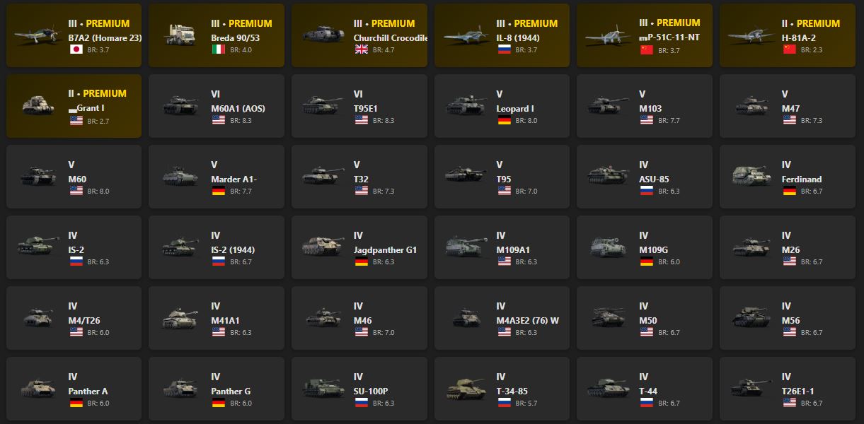 ДАННЫЕ ИДУТ ОТ АККАУНТА WAR THUNDER.COM