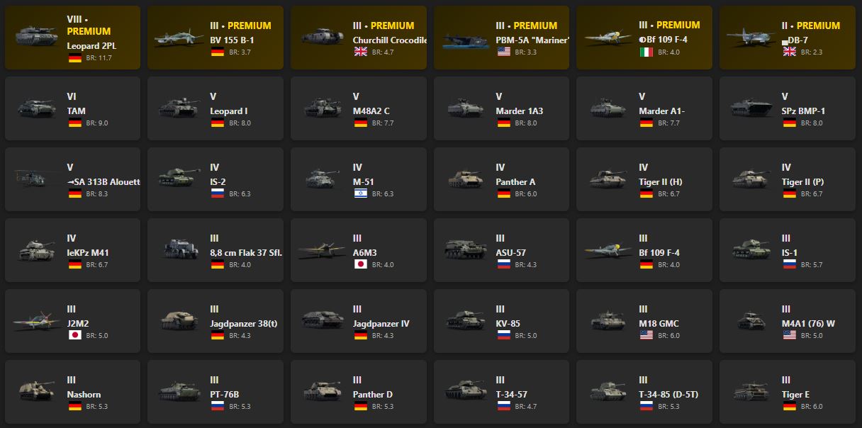ДАННЫЕ ИДУТ ОТ АККАУНТА WAR THUNDER.COM
