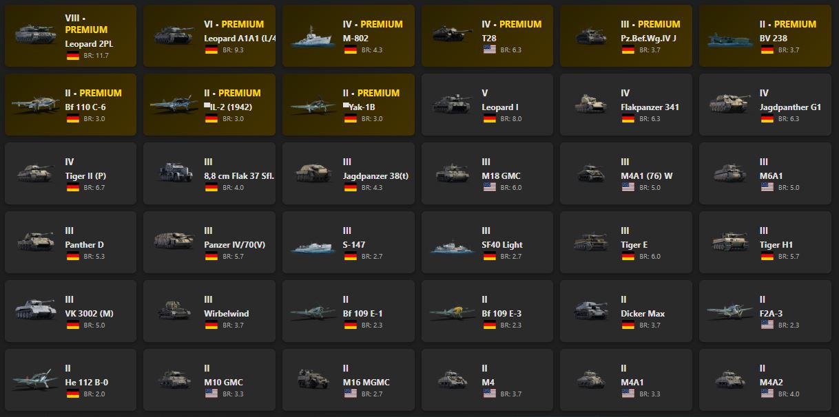 Leopard 2PL, Leopard A1A1 (L/44), M-802, T28, Pz.Bef.Wg.IV J, BV 238, Leopard I, Flakpanzer 341