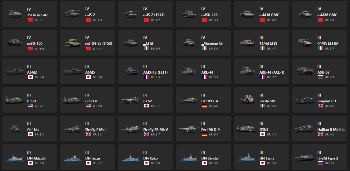 ДАННЫЕ ИДУТ ОТ АККАУНТА WAR THUNDER.COM