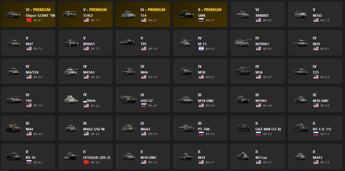 Object 122MT "MC", T54E2, T14, SMK, XM800T, M163, M47, M48A1, T95, M-51, M109A1, M26
