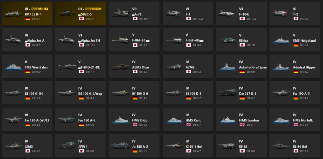 A-7E, F-1, F-104J, T-2, Alpha Jet A, Alpha Jet TH, SMS Helgoland, SMS Westfalen, Admiral Graf Spee