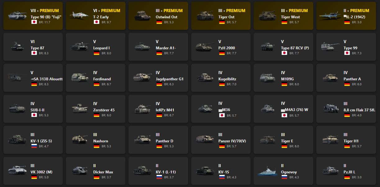 ДАННЫЕ ИДУТ ОТ АККАУНТА WAR THUNDER.COM