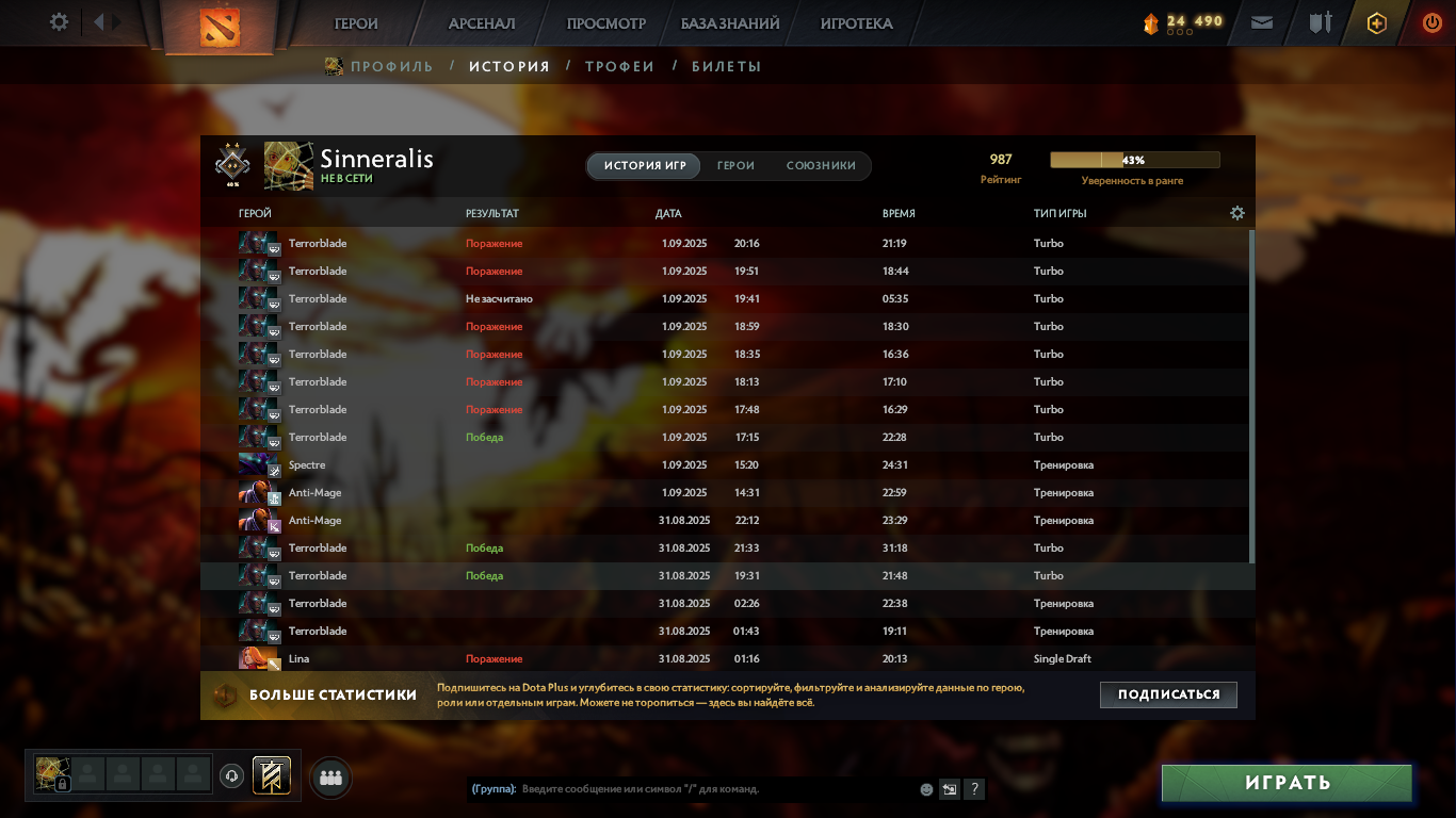 Дота аккаунт есть аркана на terrorblade🥶, 1300матчей ,✅ 1300 часов, личный аккаунт😍, имеются купленные игры among us, geomtry dash, halflife 2✅