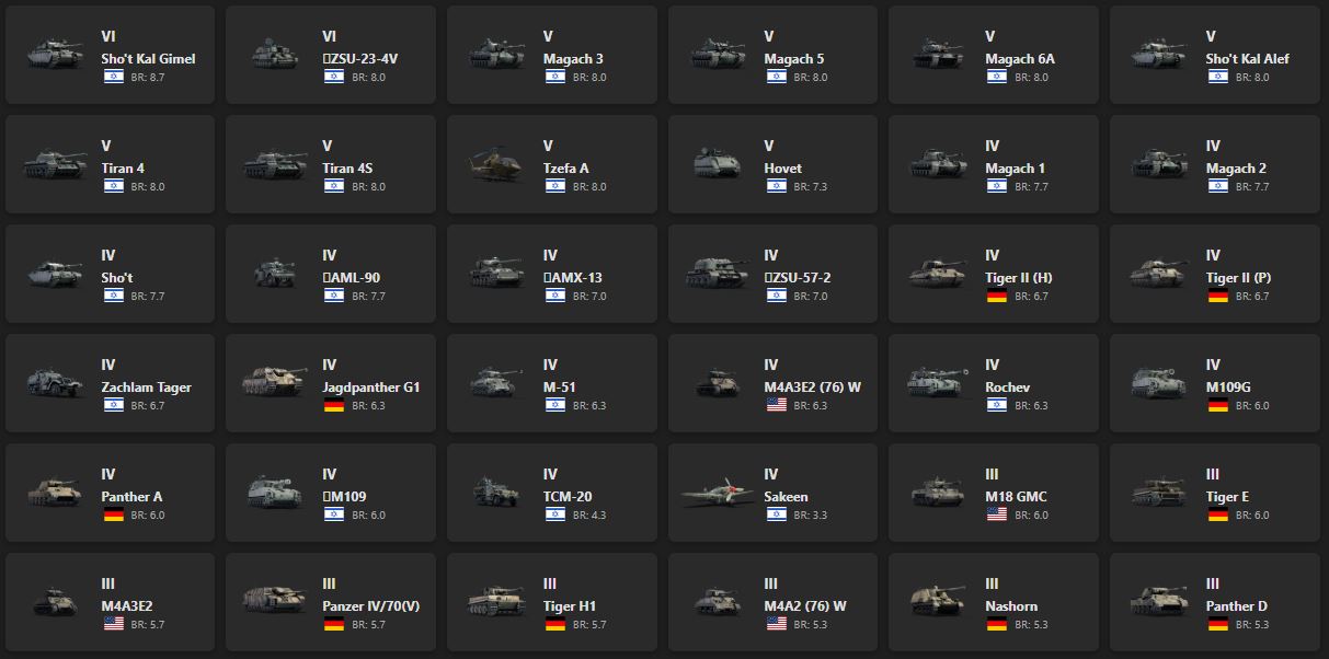 VI - 2, V - 8. Sho't Kal Gimel, ZSU-23-4V, Magach 5, Magach 6A, Sho't Kal Alef, Tiran 4, Tiran 4S, Tzefa A, Hovet