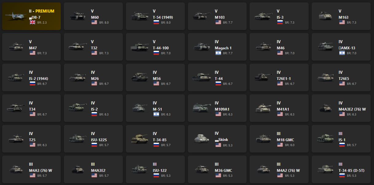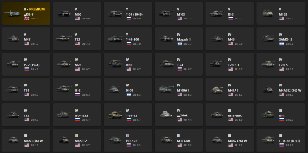 V - 8. M60, T-54 (1949), M103, IS-3, M163, M47, T32, T-44-100, Magach 1, M46, AMX-13, M26