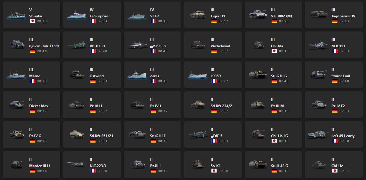 Флот V - 1 Shisaka, La Surprise, VLT-1, Tiger H1, VK 3002 (M), Jagdpanzer IV, VB.10C-1