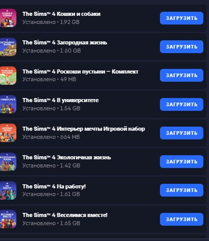 🟢 В моём профиле также есть аккаунты, где представлен широкий спектр Дополнений (DLC) в The Sims 4. Количество Дополнений на аккаунтах доходит вплоть до 60 (DLC).