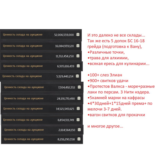 Если Вы видите у меня дублирование или похожие предложения, но с разными ценами — не беспокойтесь. Это означает, что один и тот же типовой товар (валюта, предметы, услуги) предлагают несколько разных игроков, которым он достаётся разными усилиями (кто-то фармит валюту/предметы вручную, кто-то владеет ботофермами и т.п. случаи).