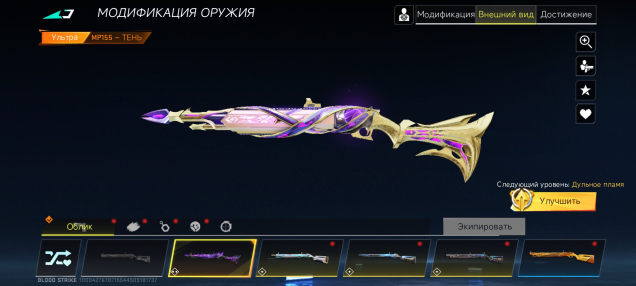 M4a1 железное восстание, м4а1 колоссальный титан, ак47 полночный ужас lv.4, kag 6 зверь титан, scar сила природы, scar уничтожение меха, scar расплавленное ядро, ar97 bit strike, mcx хання, fal зверь титан, fal развитый дракон, galil небесная жила, vector искажение неон, urb Асура, p90 расплавленное ядро, p90 кровавый кристалл, inp9 расплавленное ядро, Uzi модная аркада lv.4, mp155 тень, origin 12 громовой коготь, origin 12 Джек разрушитель, m700 скачок напряжения lv.3, m700 громовой огнестрел, kar98k star hunter.