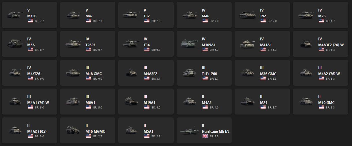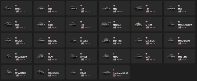 V - 3 M103, M47, T32, M46, T92, M26, M56, T26E5, T34, M109A1, M41A1, M4/T26