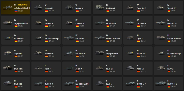 V - 2 Pokryshkin's P-39N-0, Leopard I, M48A2 C, Ferdinand, Tiger II (H), Tiger II (P), Jagdpanther G1