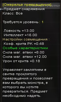 Сервер: (Classic) Азмара-ТеназарКраткое описание: ✨🔮 Ожерелье превращения 🔮✨ 0.18 20 маг