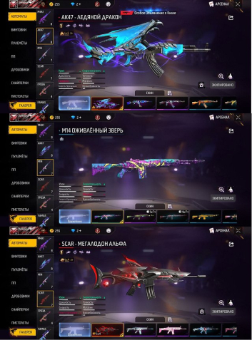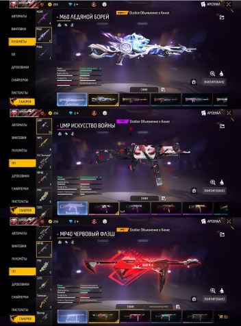 Это далеко не все оружия, на каждом есть по скину и даже старые с коллаб, которые уже не получить