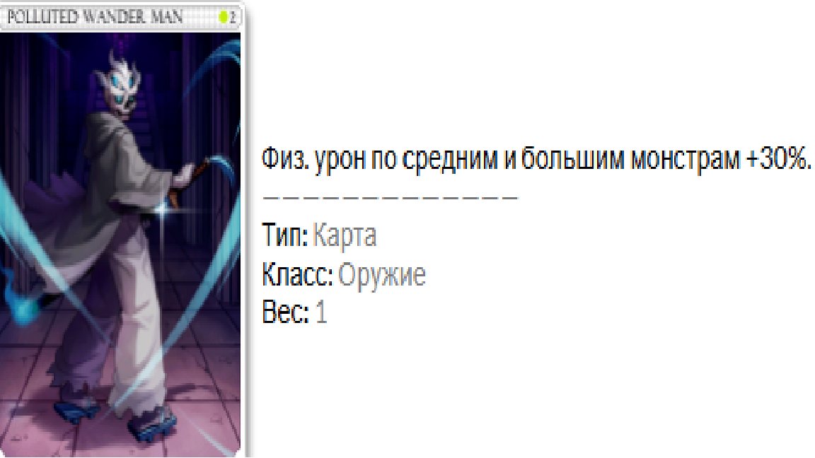 Подробное описание: Физ. урон по средним и большим монстрам +30%.