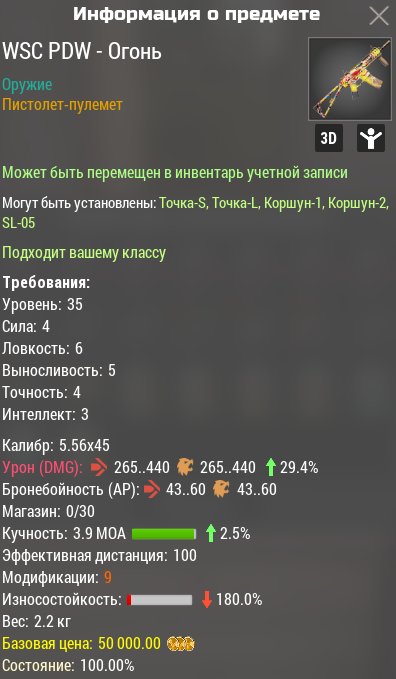 Сервер: RU-1Краткое описание: PVP PDW(ПДВ) M9, урон +29.4 % 265-440 в краске «Огонь» (Любой сервер)