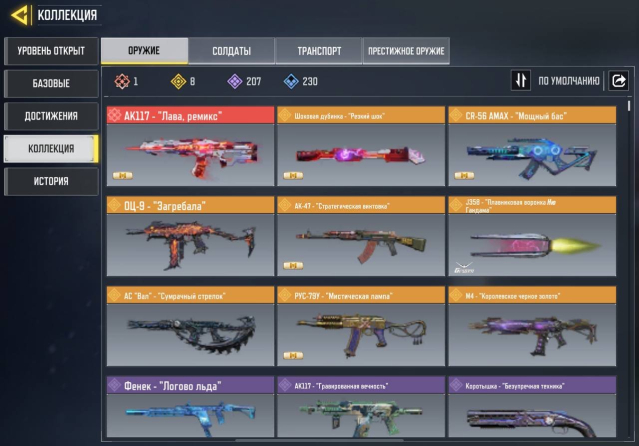 🎯 ОРУЖИЯ: 1 МИФИК; 8 ЛЕГЕНДАРНЫЙ, 207 ЭПИК, 230 РЕДКИЙ