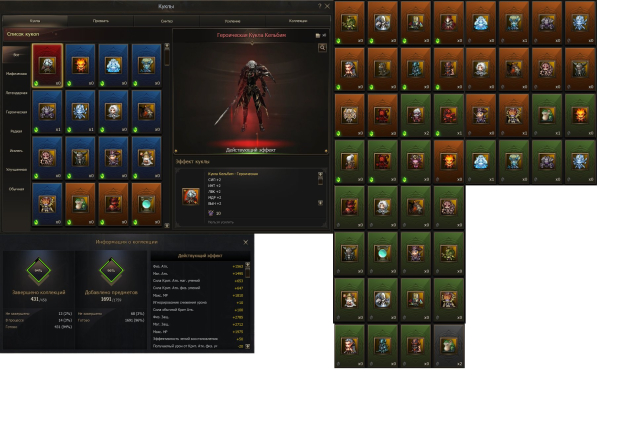 Профессия: Дух 9 благ венец, героическая кукла кельбим, +4 АК, +4 фринта, 30 бенир
