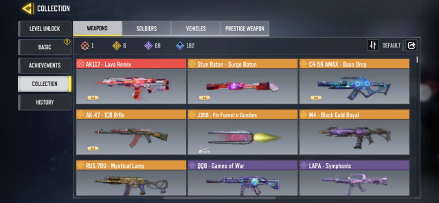 🔫 Skins Gun: 1 Mythic — 6 Legendary — 69 Epic — 162 Rare🔫