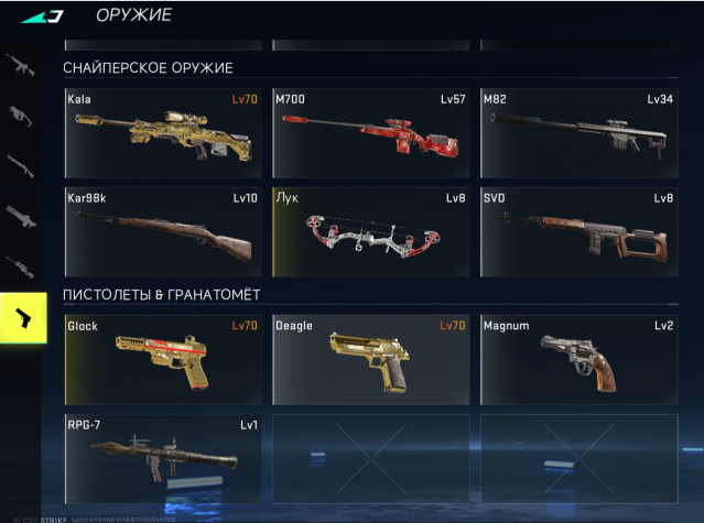 На аккаунте 4 ультра скина на оружие, 1 ультра скин на персонажа, 15 легендарных скинов на оружие. Также есть редкая катана (первый скин на холодное оружие), M4A1 DELUXE Танец дракона (выпущена в год дракона).