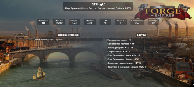 ДАННЫЕ ИДУТ ОТ АККАУНТА FORGE OF EMPIRES