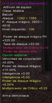 Подробное описание: Weapon 106 + 13 mystic White 10%AttaqMagic — Yellow 0.25MC — 5%AttaqMagic