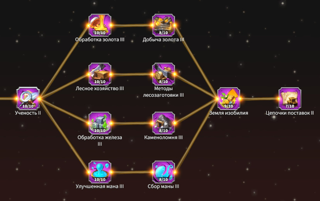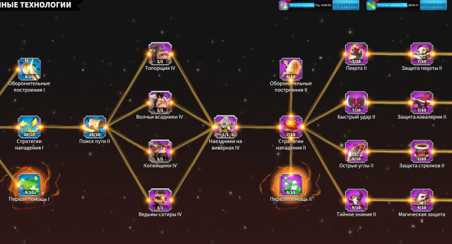 🪶 Хижина шамана / ⚔️ Казармы /🔮 Совет провидцев / 🏹 Сторожевая башня — 24 ур.