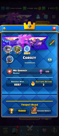 Краткое описание: 🏆 𝟏2𝟎𝟎𝟎 🏆 ЛВЛ 68, 3,3к гемов 41 СКИН | 31 ЭВО | 79 КАРТ 15 ЛВЛ, 42 КАРТ 14 ЛВЛ❤️