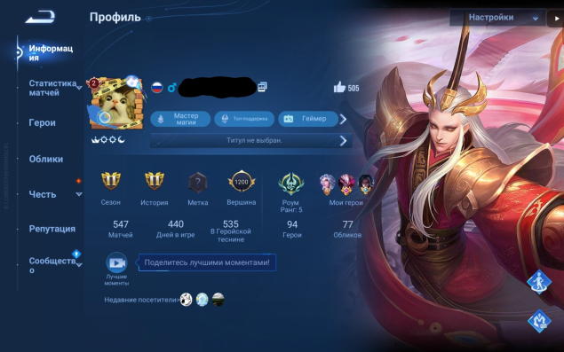 Краткое описание: 100 LVL. 94 героя. 77 обликов. 118к звездолёта.Подробное описание: 100 LVL. 94 героя. 77 обликов. 118к звездолёта. Алмаз 4. Привязка Gmail. Облики на скринах.