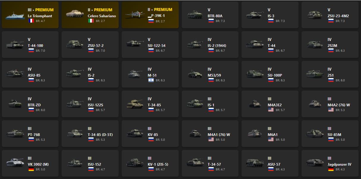 ДАННЫЕ ИДУТ ОТ АККАУНТА WAR THUNDER.COM