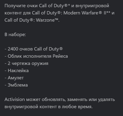 Платформа: (PC \ Xbox) Call of Duty WarzoneКраткое описание: ➡️Desert Rogue: Pro Pack (+2400)⬅️XBOX / BATTLE.NET / PS / STEAM➡️ВСЕ РЕГИОНЫ⬅️