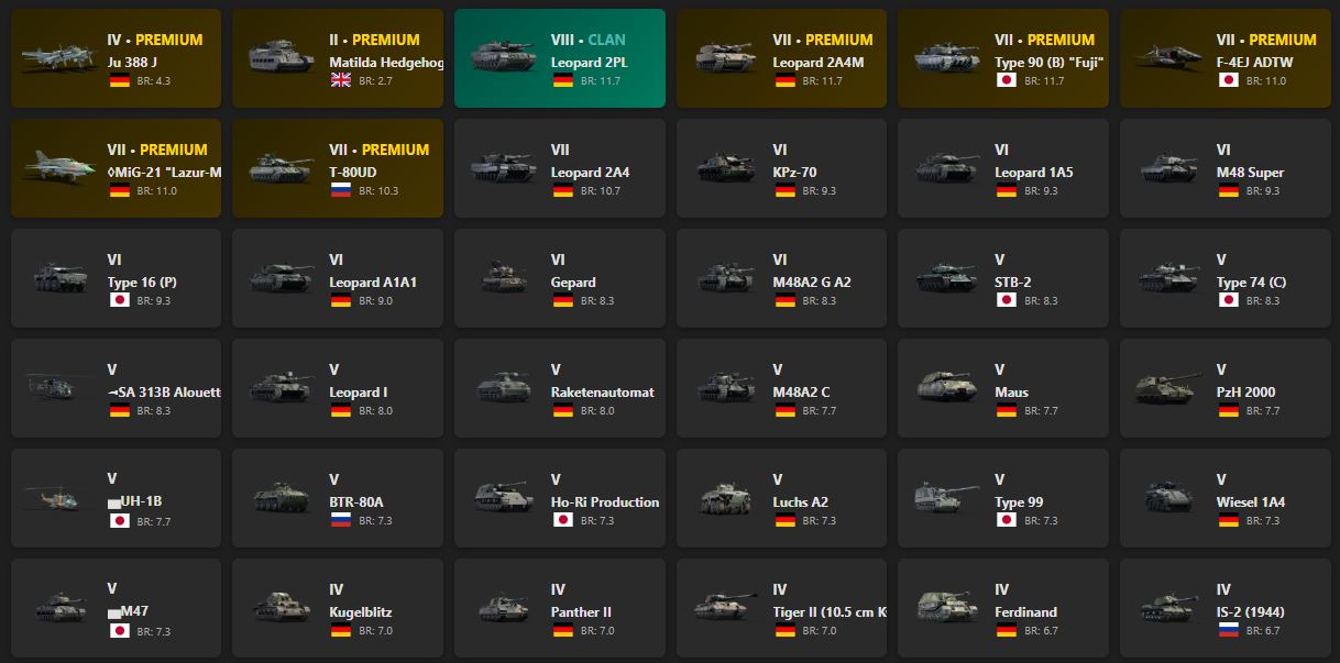 ДАННЫЕ ИДУТ ОТ АККАУНТА WAR THUNDER.COM