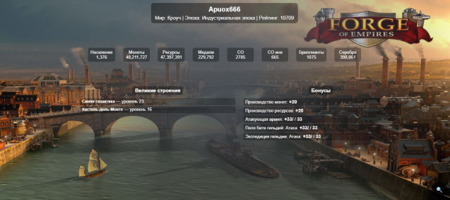 ДАННЫЕ ИДУТ ОТ АККАУНТА FORGE OF EMPIRES