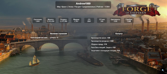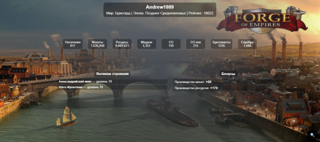 ДАННЫЕ ИДУТ ОТ АККАУНТА FORGE OF EMPIRES