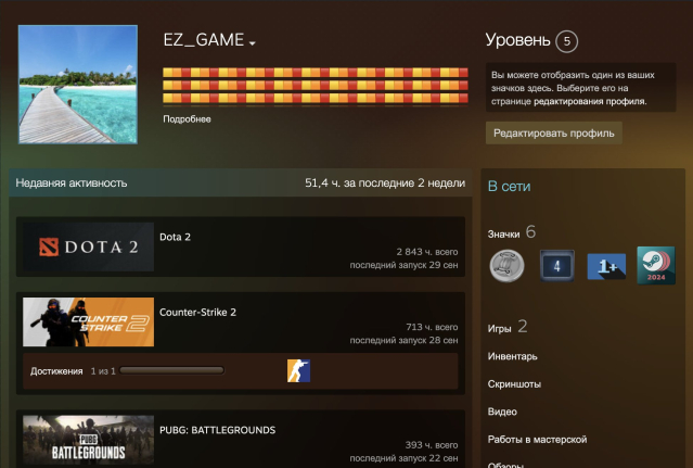 💎☘️Куплена подписка PUBG PLUS + донаты красные есть + в Dota 2 750+ предметов + 2000 ммр + в CS2 есть 4 медали!