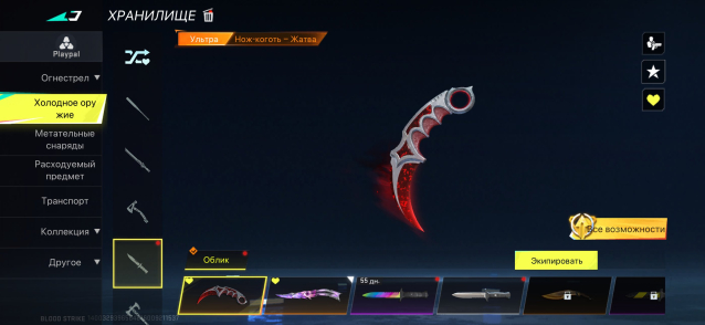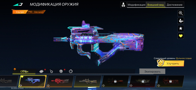 Так же на аккаунте есть 10 ультра скинов на оружие,1 энтернел, и 54 легендарных, скины есть практически на все оружия. Так же много оружий вкаченны до 70 лвл.