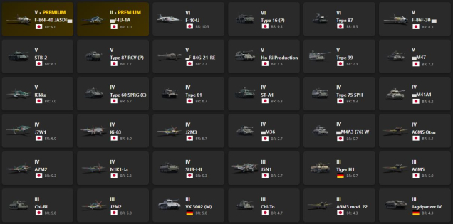 VI - 3, V - 9 F-86F-40 JASDF, F-104J, Type 16 (P), Type 87, F-86F-30, STB-2, Type 87 RCV (P), Type 99