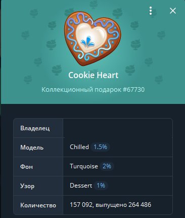 Тип подарка: ПеченьеКраткое описание: 🌙 Быстрая ВЫДАЧА 🌙【 COOKIE HEART — ПЕЧЕНЬЕ 】🟪🚀🟪 Chilled ◄►67730 ◄► Turquoise 🟪🚀🟪 [13]