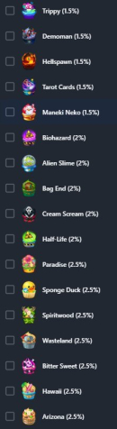 3)Выберите модель, которая вам понравилась (Имейте в виду, что чем ниже процент, тем выше цена подарка, но это не всегда так)