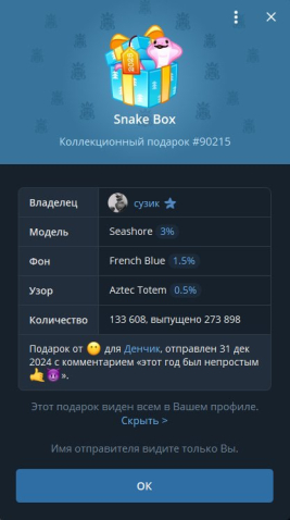 Тип подарка: ЗмеяКраткое описание: 💙💠TELEGRAM 💙💠SNAKE BOX💙💠МОНОХРОМ💙💠БЫСТРО И КАЧЕСТВЕННО💙💠100% ГАРАНТИЯ💙💠