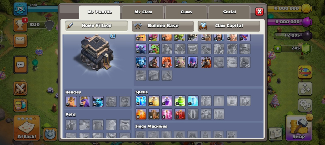 Уровень Ратуши: 9Краткое описание: 🟥⬛🛑Th 9 FULL MAX🛑⚫XP 75🛑⚫Heroes Level-K30/Q30/MP10🛑⚫Gems 285🛑⚫With Gmail🛑⚫Full Access🛑⬛🟥