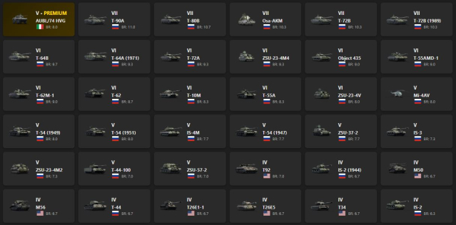 VII - 5, VI - 11 AUBL/74 HVG, Т-90А, T-80B, Osa-AKM, T-72B, T-72B (1989), T-64B, T-72A, ZSU-23-4M4