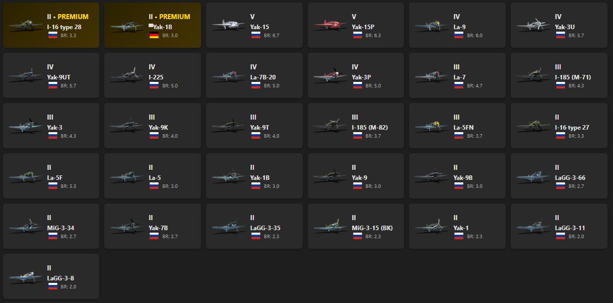 V - 2 I-16 type 28, Yak-1B, Yak-15, Yak-15P, La-9, Yak-3U, Yak-9UT, I-225, La-7B-20, Yak-3P, La-7, I-185 (M-71)