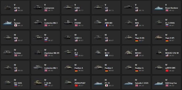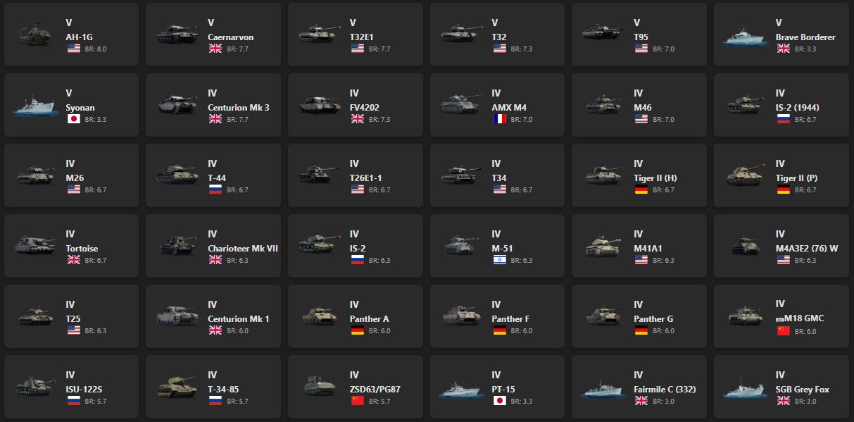 V - 7 AH-1G, Caernarvon, T32E1, T32, T95, Brave Borderer, Syonan, Centurion Mk 3, FV4202, AMX M4