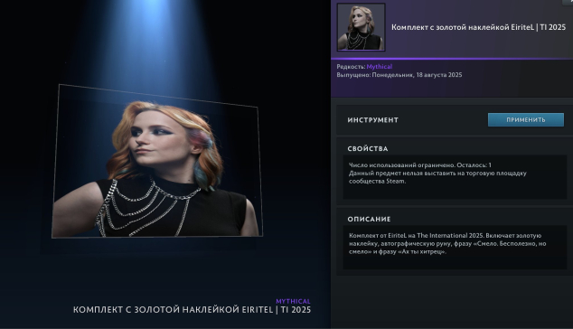 Подробное описание: После оплаты отправьте трейд-ссылку, после распаковки комплекта фраза закрепится на вашем аккаунте